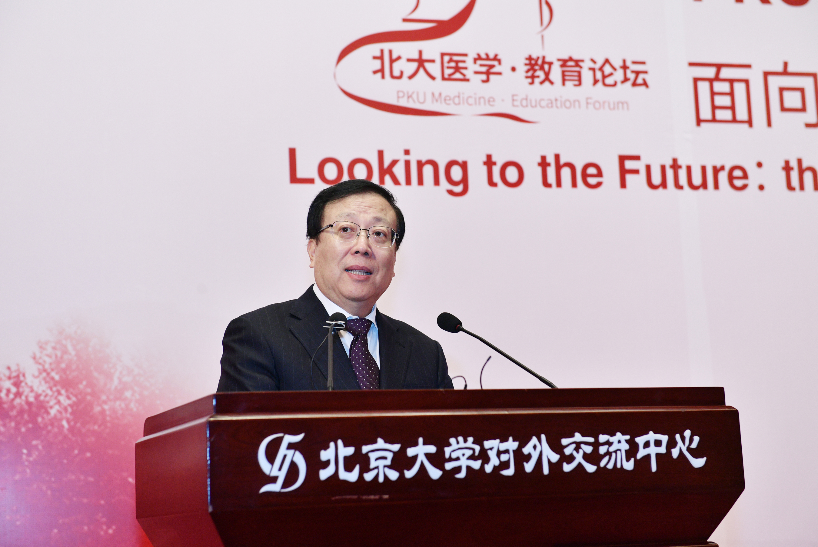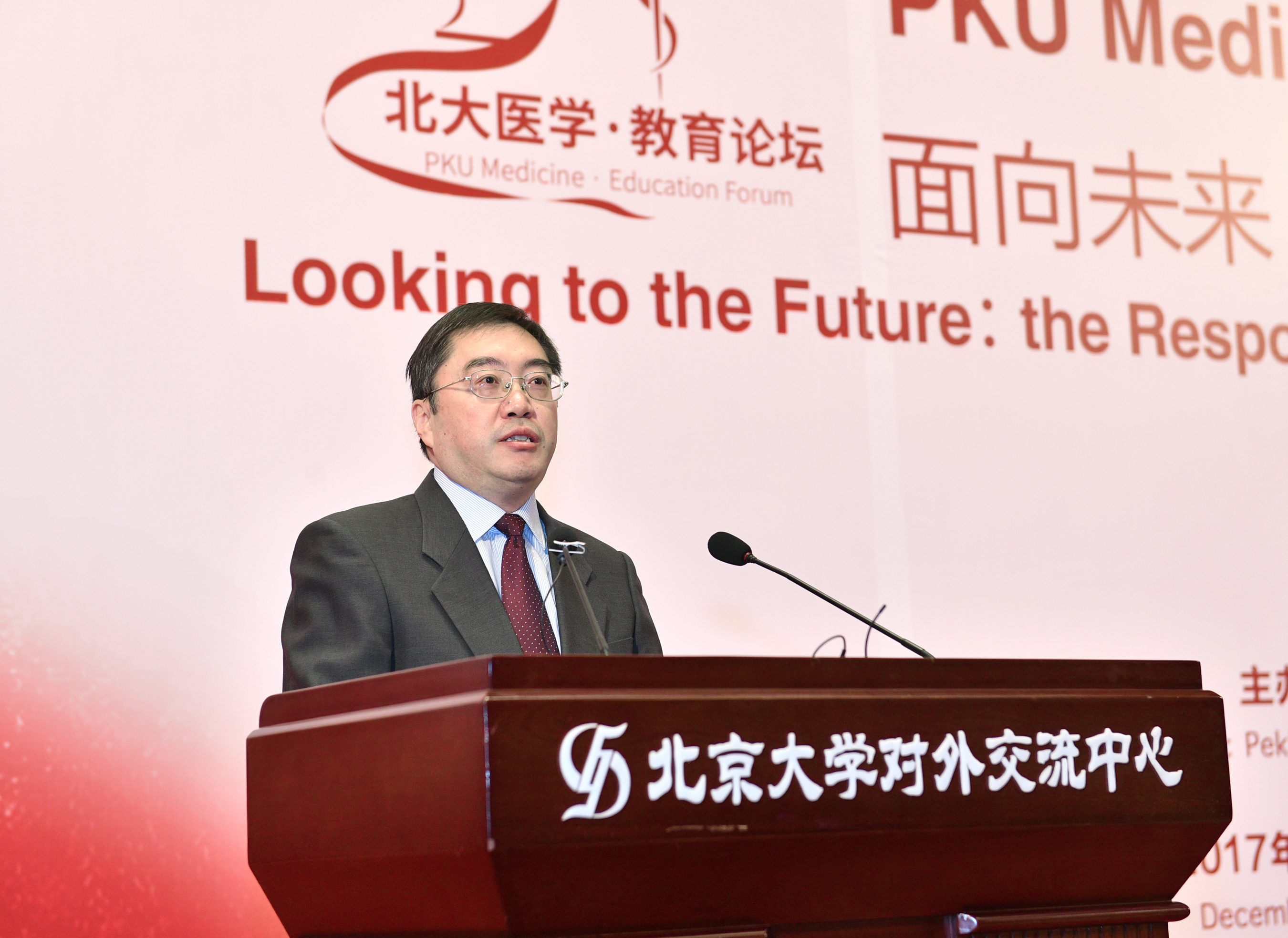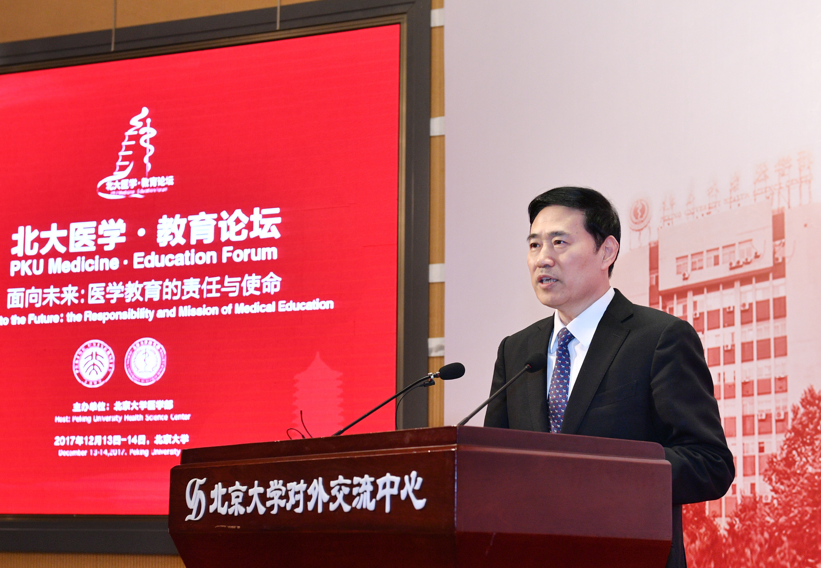 郝平书记在致辞中指出,本次论坛是在深入学习贯彻党的十九大精神的关键时期召开的,北大医学教育者要充分发挥北大医学优势,在健康中国战略的实施中有更大的担当和作为,持续推进医学教学改革,保持北大医学的引领地位,建设世界一流的医学教育。