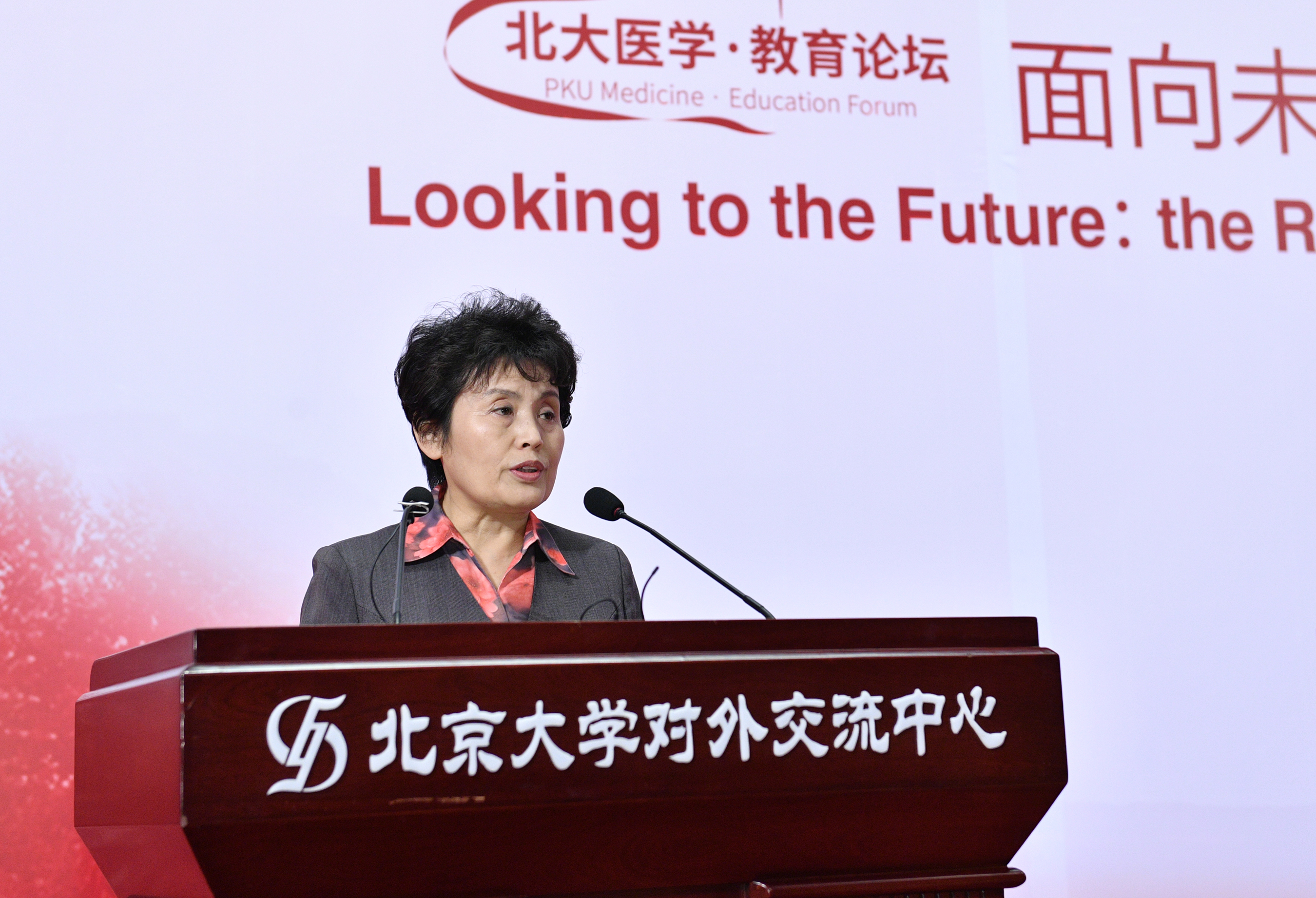 12月13日,全国政协副主席、中国科学院院士、北京大学医学部原主任韩启德,教育部副部长林蕙青,国家卫计委科教司司长杨青,教育部高教司副司长王启明,中华医学会副会长、中国高等教育学会医学教育专业委员会会长、北京大学原常务副校长、医学部原常务副主任柯杨,北京大学党委书记郝平,中国工程院院士、北京大学副校长、医学部主任詹启敏,北京大学副书记、医学部书记刘玉村等出席论坛开幕式并致辞。北京大学医学部副主任王维民主持了开幕式。